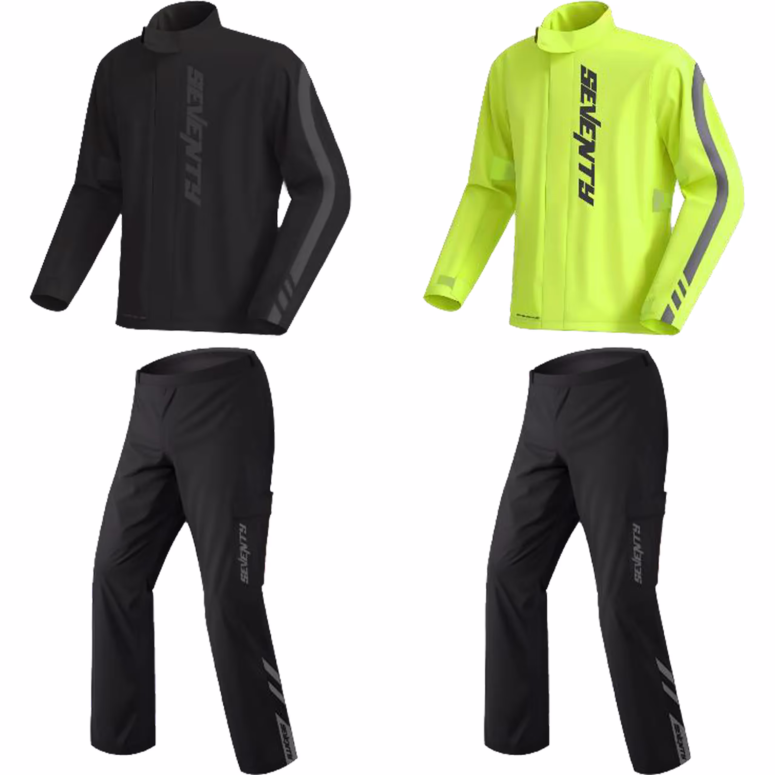 The Moon Suit is a waterproof jacket and pants set, designed for full weather protection and comfort. The jacket features a central zipper with a protective flap, adjustable waist, arms, and cuffs, while the pants have elastic adjustments at the waist and hems, plus a zipper at the bottom for easy wear. Reflective elements add visibility, and a mesh lining ensures comfort throughout.